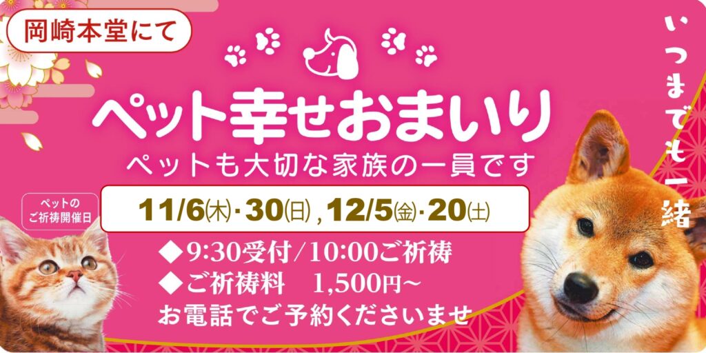 一畑山薬師寺では、ペット様とご一緒にお堂にお入りいただきお参りをさせていただく特別な日を設けております。