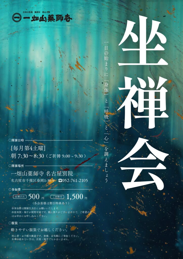 毎月第4土曜日、朝7時半から名古屋別院にて坐禅会を開催させていただいております。