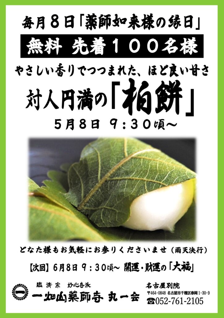 5/8【名古屋別院】柏餅 無料配布のご案内