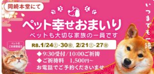 一畑山薬師寺では、ペット様とご一緒にお堂にお入りいただきお参りをさせていただく特別な日を設けております。