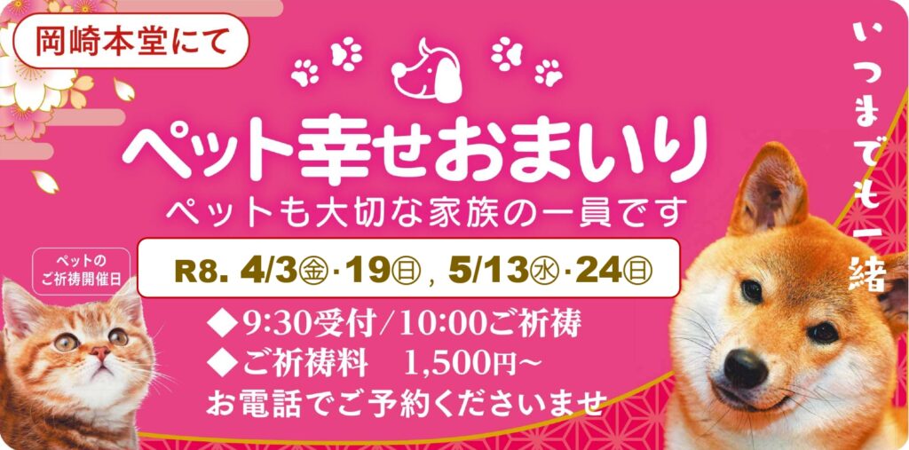 一畑山薬師寺では、ペット様とご一緒にお堂にお入りいただきお参りをさせていただく特別な日を設けております。