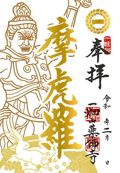 2月限定、「摩虎羅」大将様、金の箔押しご朱印です。